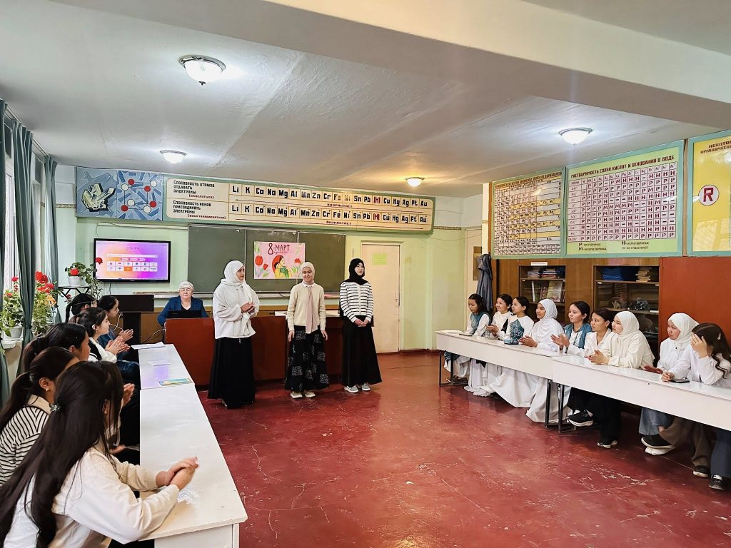 Ошондой эле “Экологиялык үчтүк: Табият, Энергия жана Жашоо” темасында Мурзали кызы Аида, Нурмаилова Жазгүл жана Талипбек кызы Айтгүл чыгып сүйлөп, экологиялык көйгөйлөр, энергияны үнөмдөө жана жаратылышты коргоонун мааниси тууралуу пайдалуу маалыматтарды бөлүшүштү.