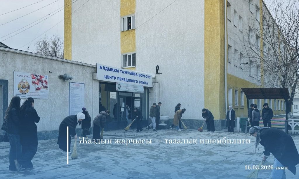 Тазалык ишембилигинин жүрүшүндө колледждин айланасы иретке келтирилип, таштандылар жыйналып, айлана-чөйрөнү таза кармоо жана жаратылышка аяр мамиле кылуу боюнча үлгү көрсөтүлдү.