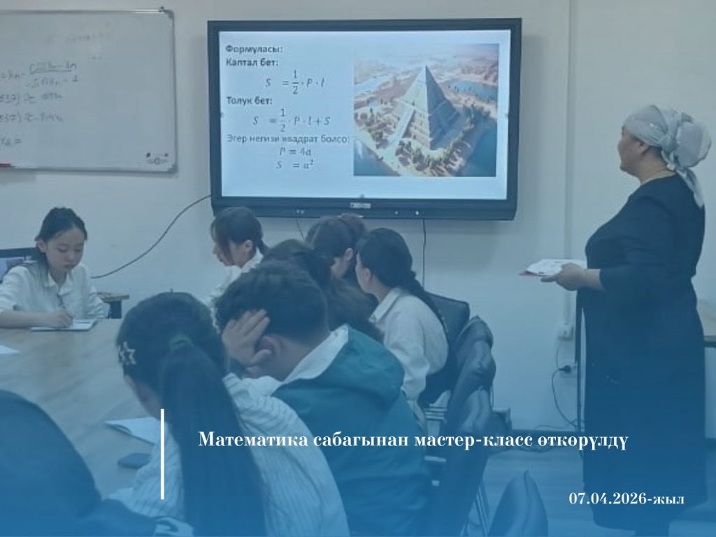 2026-жылдын 7-апрелинде ГжТИ циклынын окутуучусу Салаева С.К. тарабынан бекитилген графикке ылайык математика сабагынан мастер-класс өткөрүлдү.